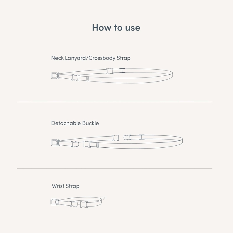 - 2-in-1 design: wrist strap and crossbody strap in one product