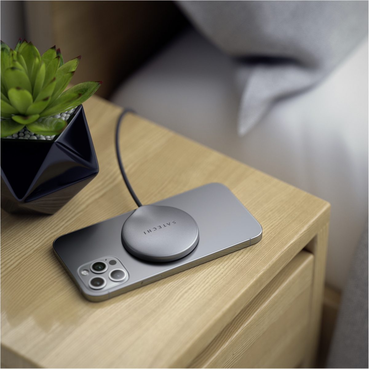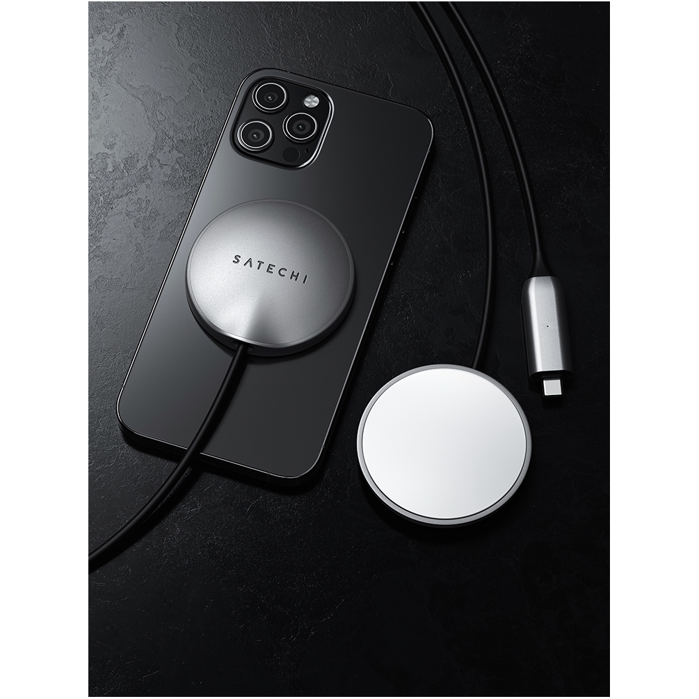 Take advantage of magnetic charging with the Satechi USB-C Magnetic Wireless Charging Cable. Featuring a built-in wireless charging module that quickly charges the iPhone 12 Pro - up to 7.5 watts, plus its convenient magnetic connection that attaches to the smartphone in a snap. With a longer 1,5-meter cable and reversible USB-C connector, the Magnetic Wireless Charging Cable offers both convenience and portability for recharging the iPhone from any surface. The USB-C Magnetic Wireless Charger will output 7,5 watts, when connected to a power supply that provides 18 watts or more.