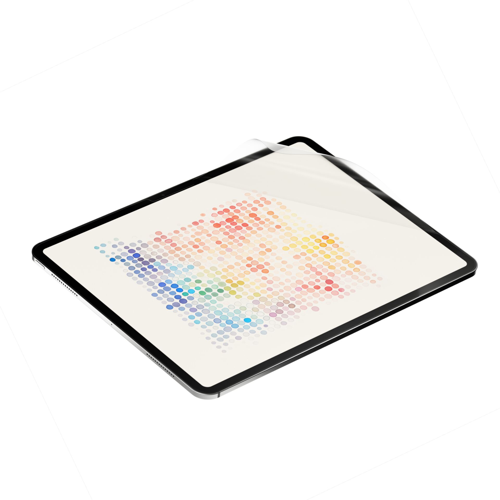 This is all made possible by the improved nanodots technology. Inside the protective film are numerous micro-spheres, invisible to the naked eye, which cause the Apple Pencil to vibrate barely noticeably when used and make it feel as if you were gliding over paper with the pen. These microspheres are designed in such a way that the light of the display shines around them as well as through them, which still does not affect the quality of the display image. The revised formula with Swiss-made polymers also provides even greater image clarity. In addition, the film minimizes wear and tear on the tip of the Apple Pencil and reduces fingerprints on the iPad's display.