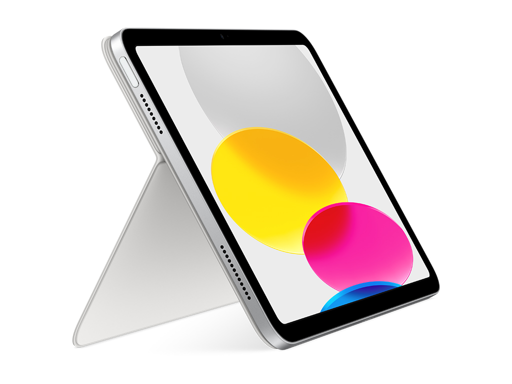 Type comfortably and work on a large trackpad with Magic Keyboard Folio. Quickly adjust the volume or search for a file using the function key row. The versatile two-piece design has a detachable keyboard and a protective back panel with an adjustable stand for flexible viewing.