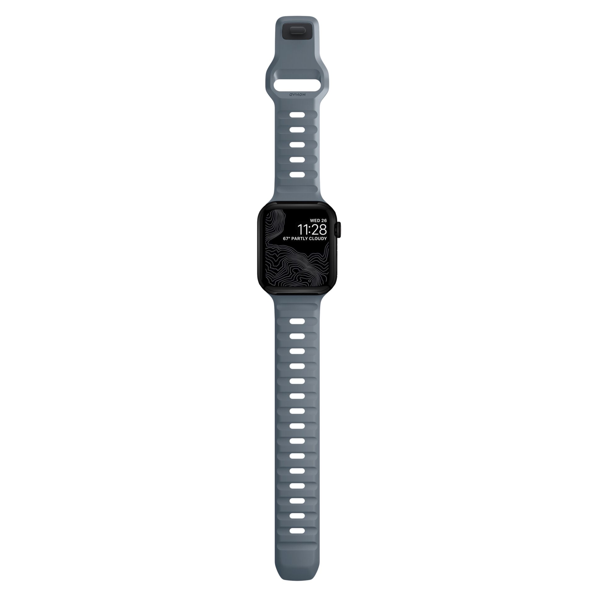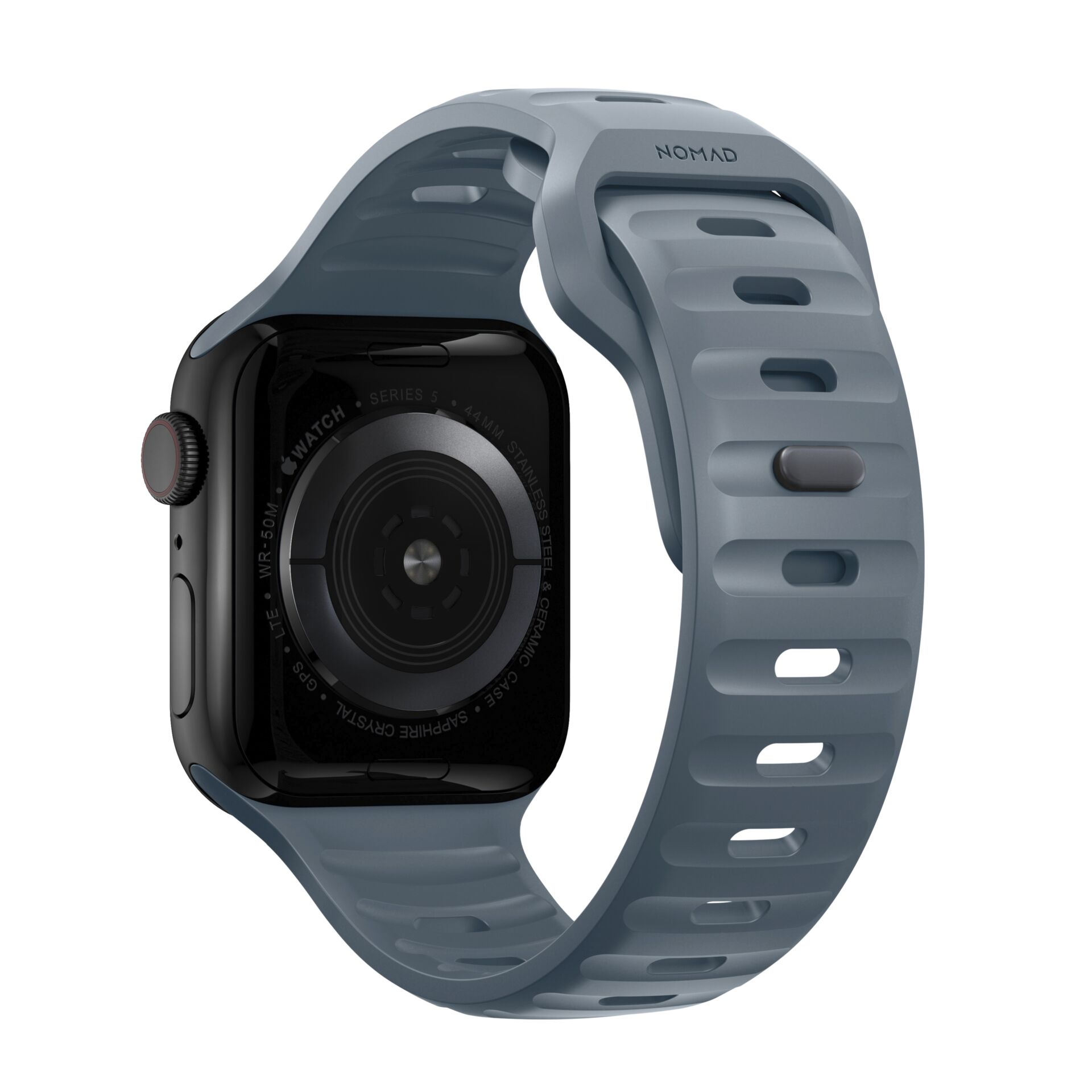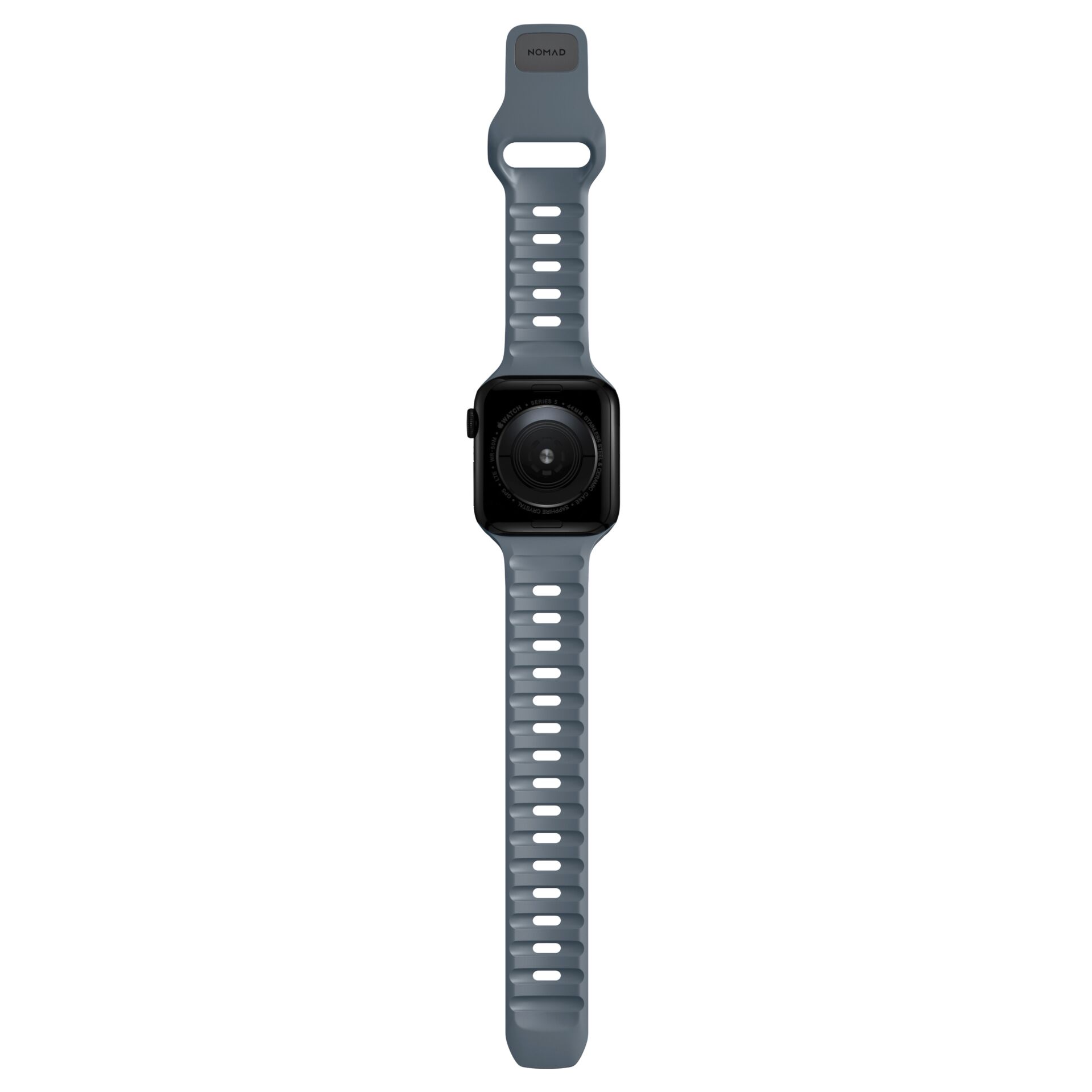 Designed to give any Apple Watch a modern and sleek athletic look for intense workouts and everyday wear. A sporty aesthetic and sharp details combine for a distinct, yet understated look unique from any other strap. Nomad Sport Band has a lightweight and breathable design which is constructed from a soft, flexible FKM rubber for all-day comfort. FKM rubber is a high-performance fluoroelastomer that is antimicrobial and can be easily sanitized with soap and water. This material ensures the ideal balance of comfort and durability. FKM’s natural flexibility allows the strap to easily contour around the wrist and its resistance to oils allows it to quickly wipe clean after a workout. The black FKM is finished with a subtle microtexture for a classy satin finish.
