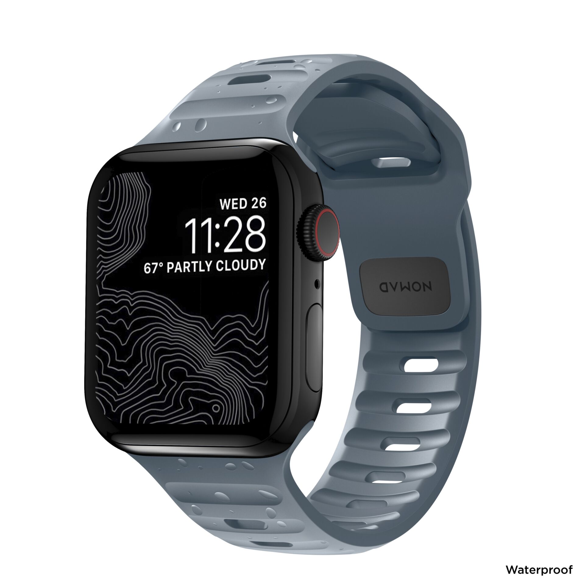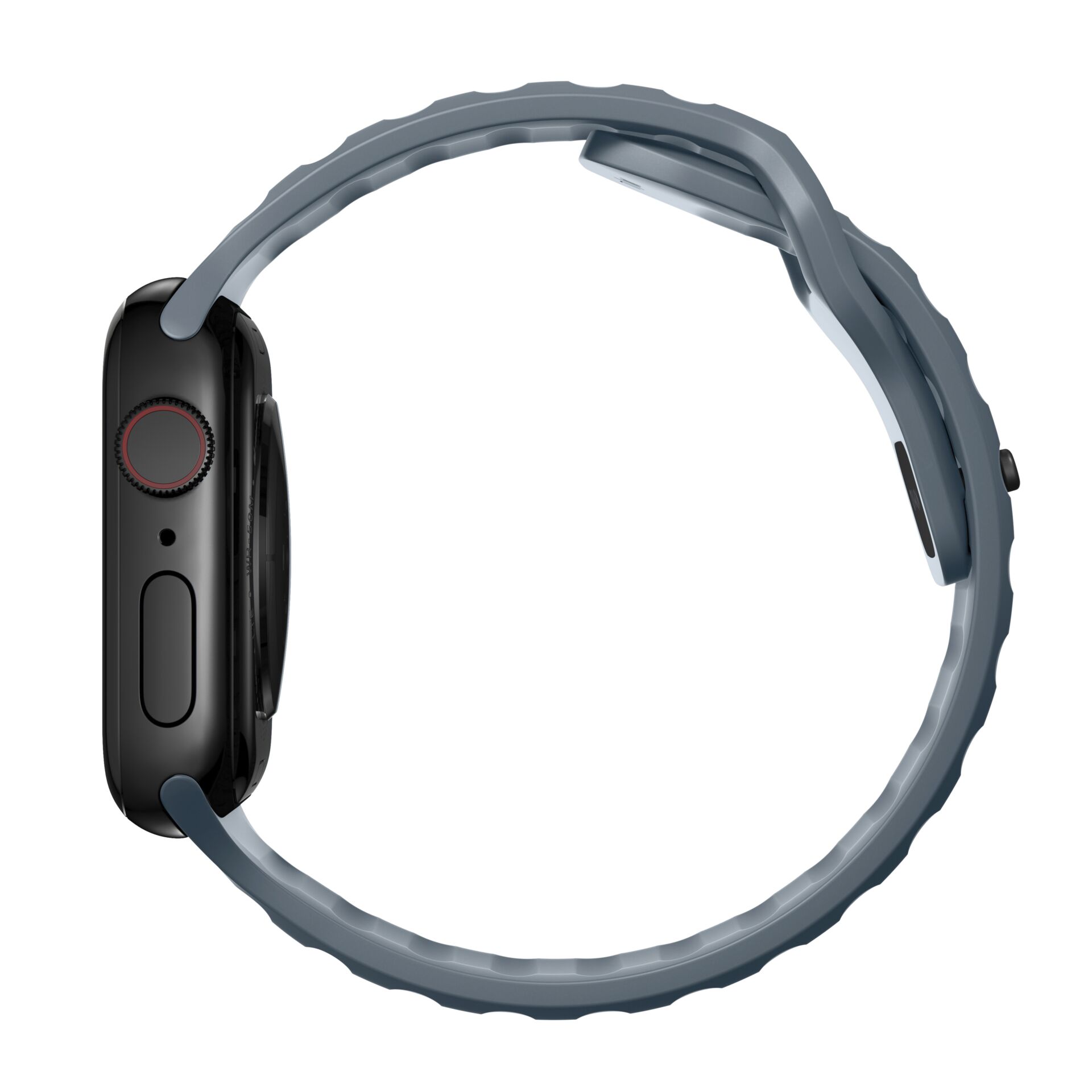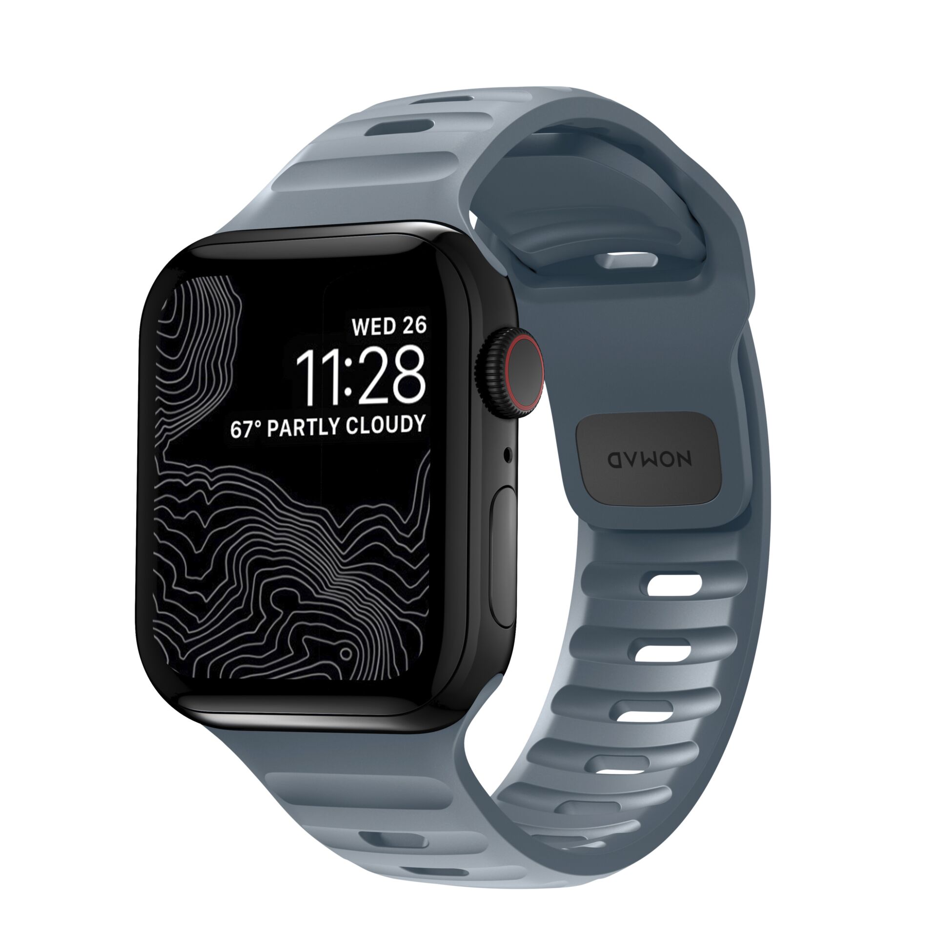 Designed to give any Apple Watch a modern and sleek athletic look for intense workouts and everyday wear. A sporty aesthetic and sharp details combine for a distinct, yet understated look unique from any other strap. Nomad Sport Band has a lightweight and breathable design which is constructed from a soft, flexible FKM rubber for all-day comfort. FKM rubber is a high-performance fluoroelastomer that is antimicrobial and can be easily sanitized with soap and water. This material ensures the ideal balance of comfort and durability. FKM’s natural flexibility allows the strap to easily contour around the wrist and its resistance to oils allows it to quickly wipe clean after a workout. The black FKM is finished with a subtle microtexture for a classy satin finish.