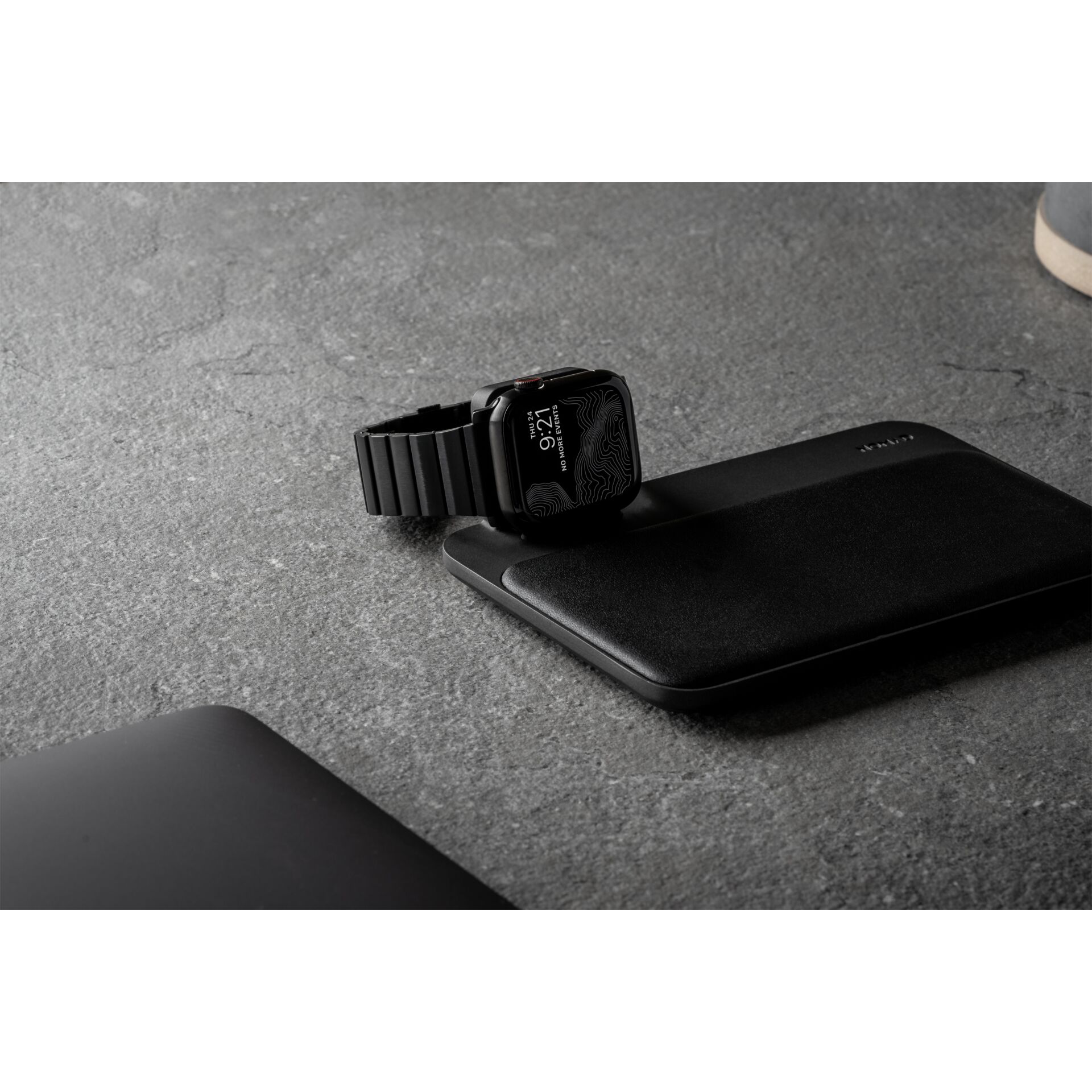 The durable, adjustable links and integrated lugs ensure a stable connection to the Apple Watch. The magnetic clasp is equipped with epoxy-sealed neodymium magnets, which help reduce corrosion and support long-term reliable function without changing the ease of opening and closing. All components of the bracelet are brushed and additionally coated with diamond-like carbon (DLC) to make the surface more resistant to scratches and to protect the dark finish evenly. Individual links can be removed using the tool provided to customize the length of the bracelet.