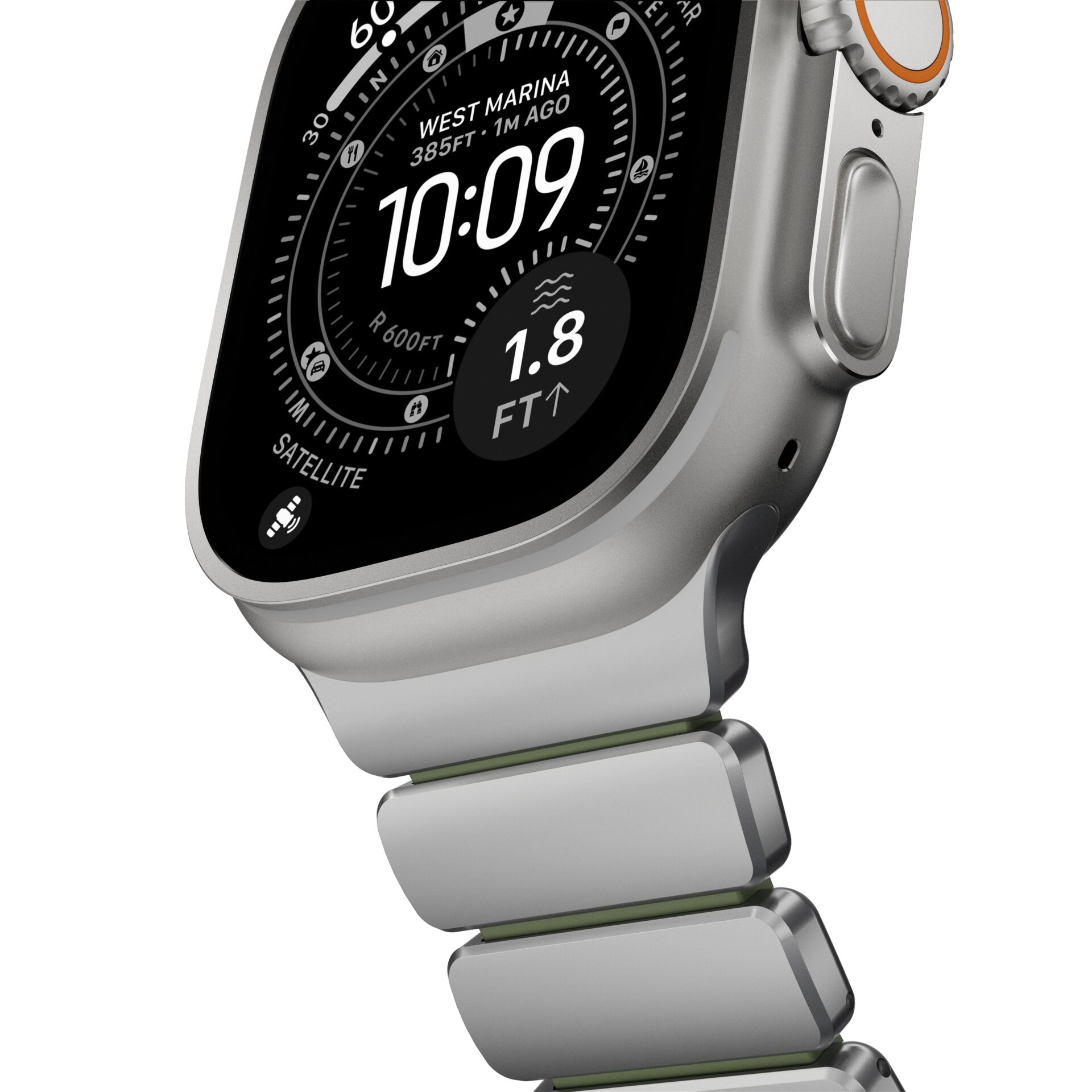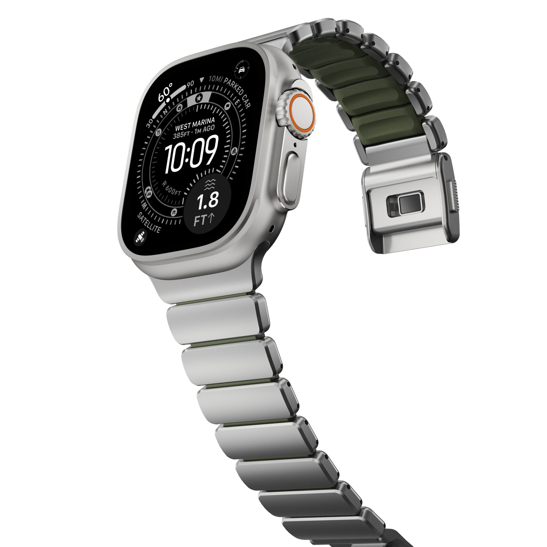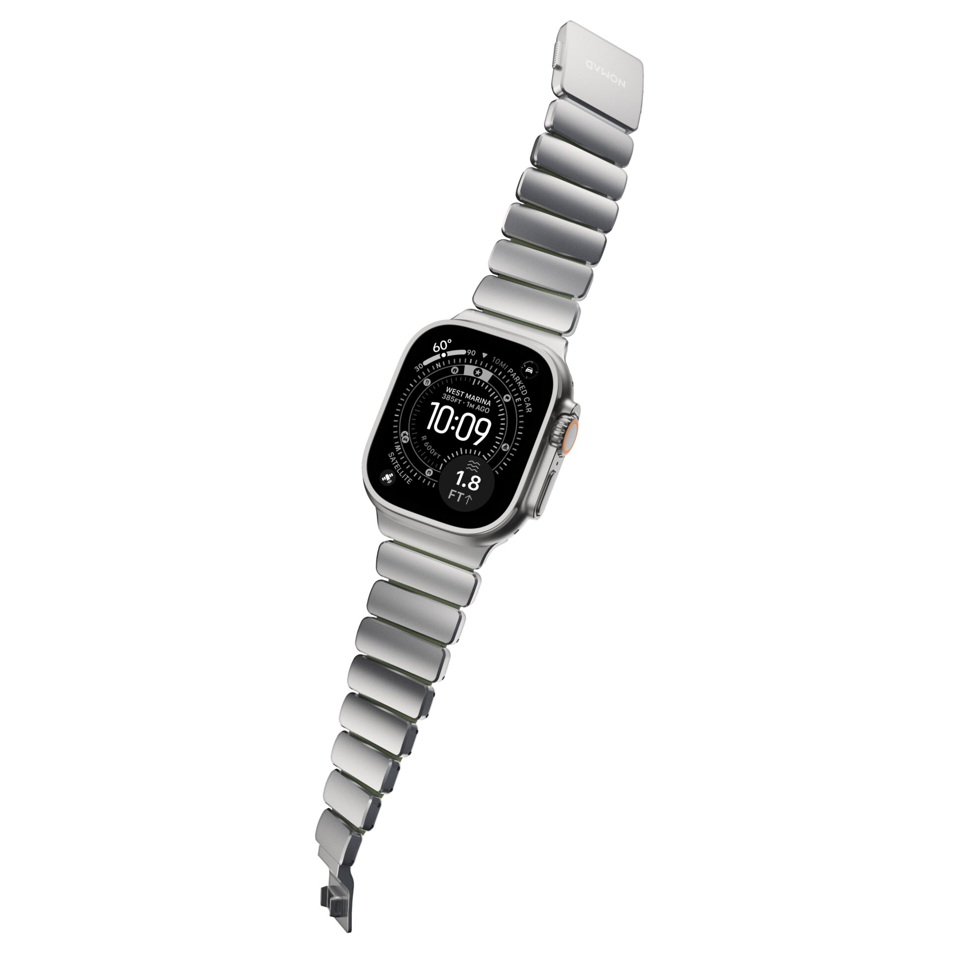 The Nomad Stratos Band Titanium Natural 49 mm is a premium Apple Watch band designed for everyday wear as well as for sports and outdoor activities.