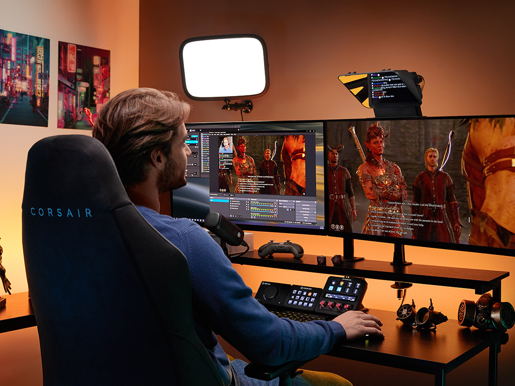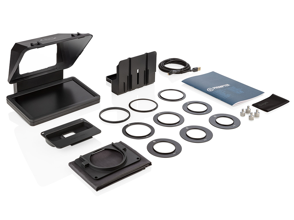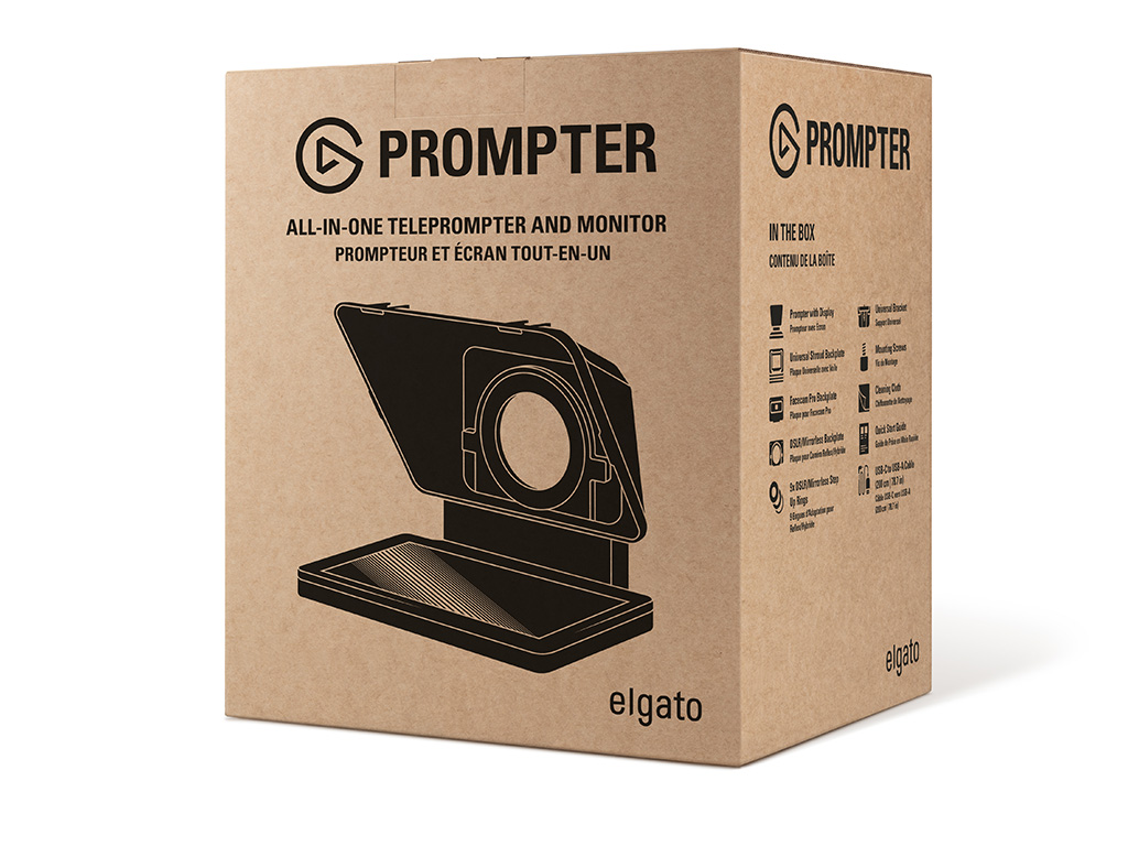 With Prompter, create and connect with confidence. Present video scripts, read Twitch chat, or Zoom conference with natural eye contact. Streamline your setup with Prompter’s built-in 9\" display, unlike other teleprompters that require an extra tablet or smartphone. Prompter works with almost any webcam or camera (even the widest DSLR lenses) and connects directly to your PC or Mac. Customize its display using Camera Hub software, or drag and drop any window — just like a monitor. Swap out cameras with ease using an intuitive backplate system, then plug in with a single USB-C cable.