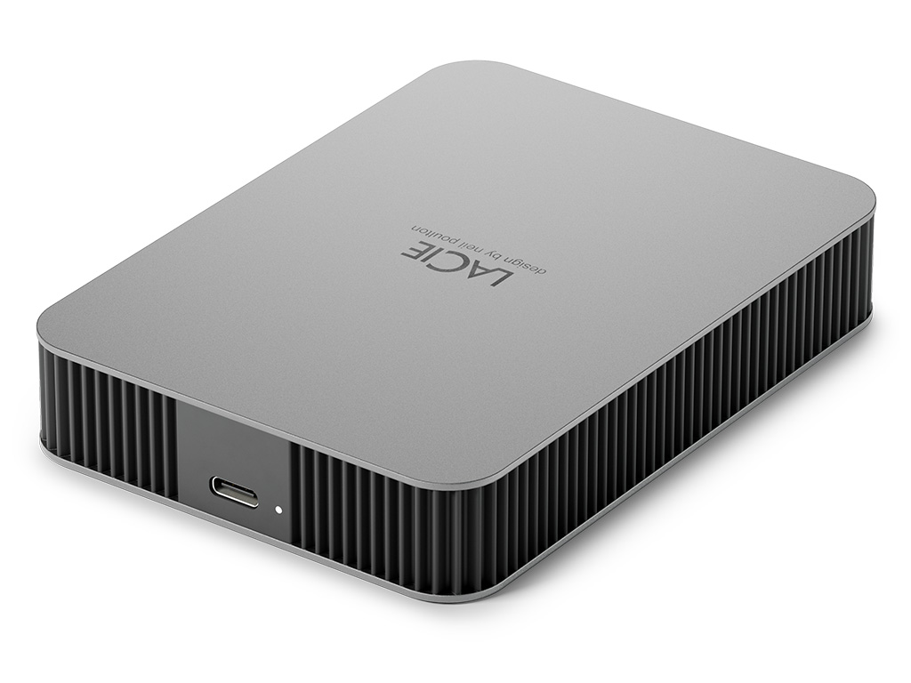 LaCie Mobile Drive is the nexus of portability and capacity. Encased in a sleek Neil Poulton design, each drive is constructed using post-consumer recycled materials. Work with PC, Mac, and iPad USB-C, just plug-in and go. One-click or automatic backup makes file storage extra smooth, plus up to 5 TB of capacity makes plenty of room for photos, playlists, docs and more.