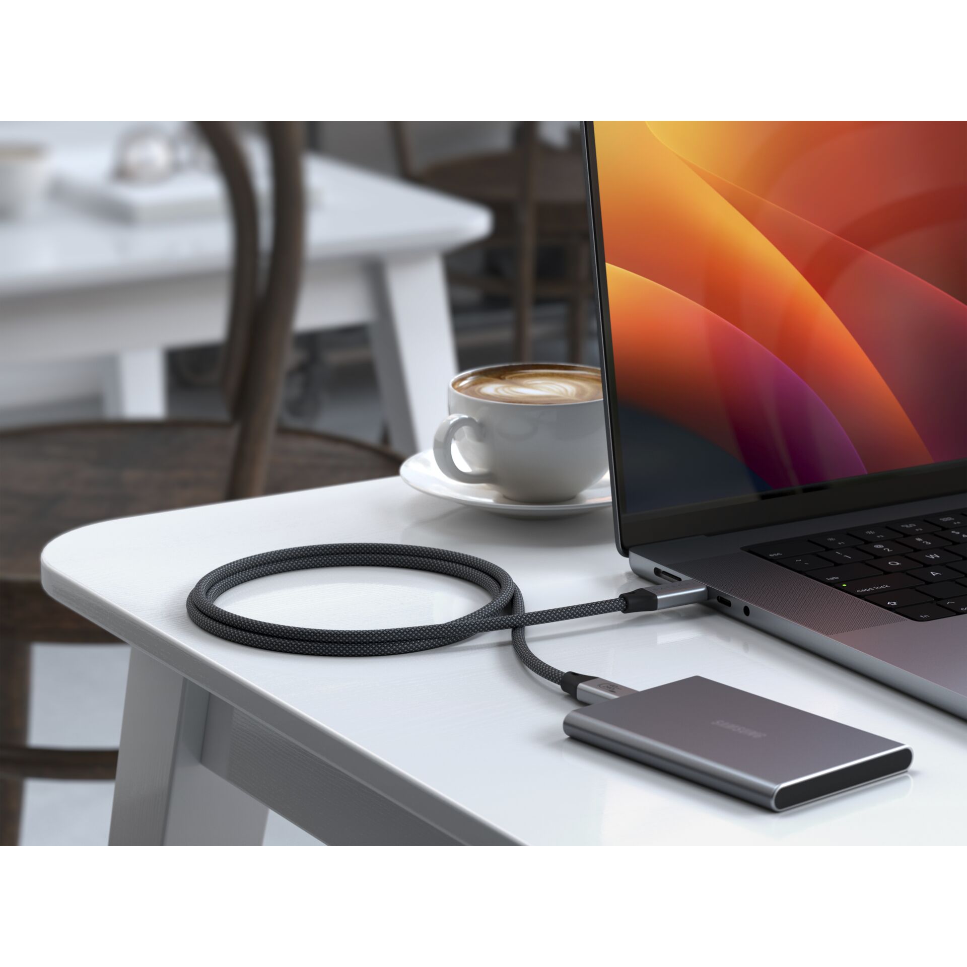 Optimized charging power and data transfer combined with graphic high performance: The Satechi USB4 Pro Cable offers an efficient solution for fast data transfer. The 1.2 meter long cable with a durable black design supports power delivery of up to 240 watts and data transfer of up to 40 Gbps.